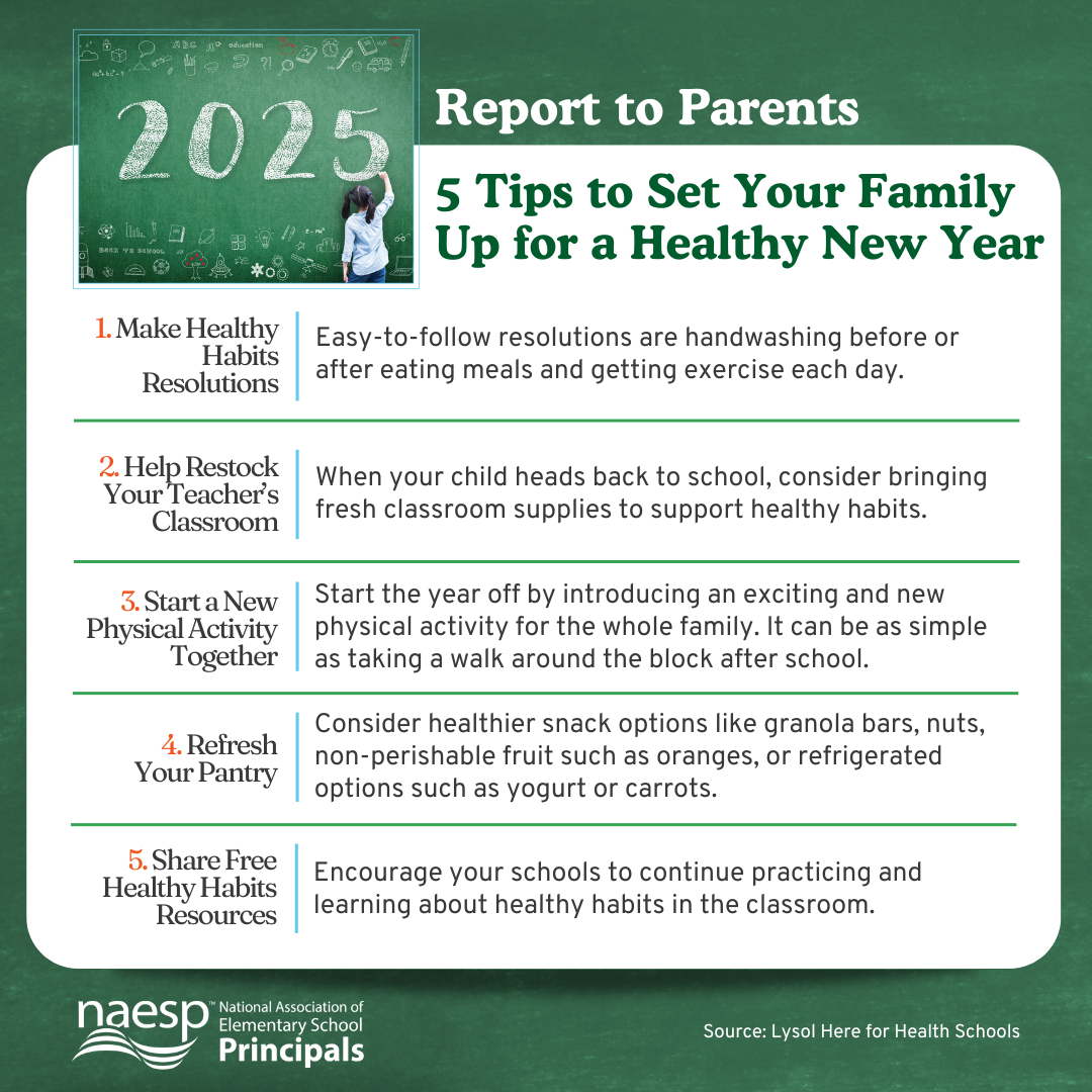 As children wind down from the holidays and head back to school in the New Year, families can take this as a moment to set themselves up for a happy and healthy 2025 with some new habits. This edition of Report to Parents features strategies to do just that. Share it with your school families.
