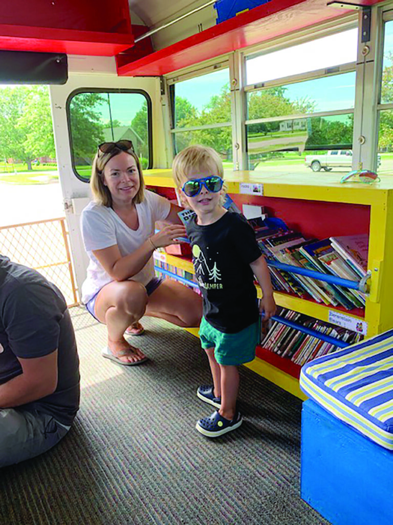 The Big Blue Book Bus targets public pre-K–6 readers but welcomes all patrons, including parents and children who attend parochial schools. “If a kid wants to get a book, we let them get a book,” Edwards says. A relaxed returns policy lets children keep the books they love, and Dog Man, Captain Underpants, Monarch, and Blue Stem titles are perennial favorites.
