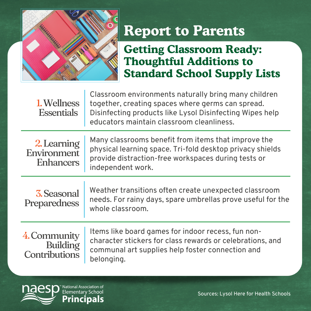 While your child’s teacher might have already sent their supply lists to cover the basics, you might be thinking of strategic additions that can boost the classroom experience throughout the school year. This Report to Parents features items that may not appear on the official school supply list this year.